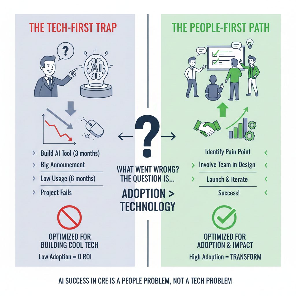 The number one predictor of AI success in CRE is whether you solved for adoption before you solved for technology.